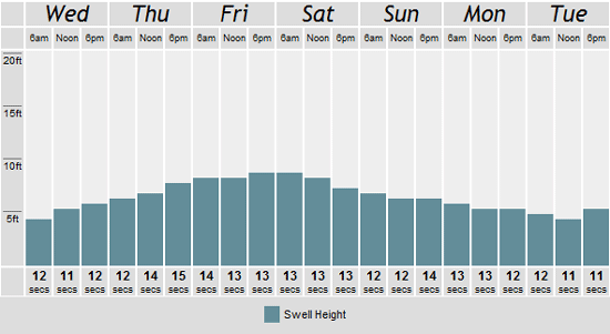 The swells at the moment look a bit small, even though it seems Magic Seaweed is predicting something for Thursday through the weekend, so it might happen.