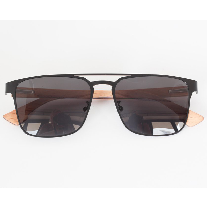 A Unisex sunglass design with Matt black Stainless Steel frames and Oak wood temples.