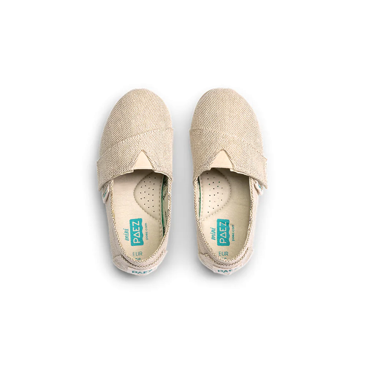 The Sand PAEZ Combi for Babies is the original iconic espadrille shoe. It is cool, comfortable and definitely a summer essential. Now with Velcro closure which makes it easy to put on and take off.